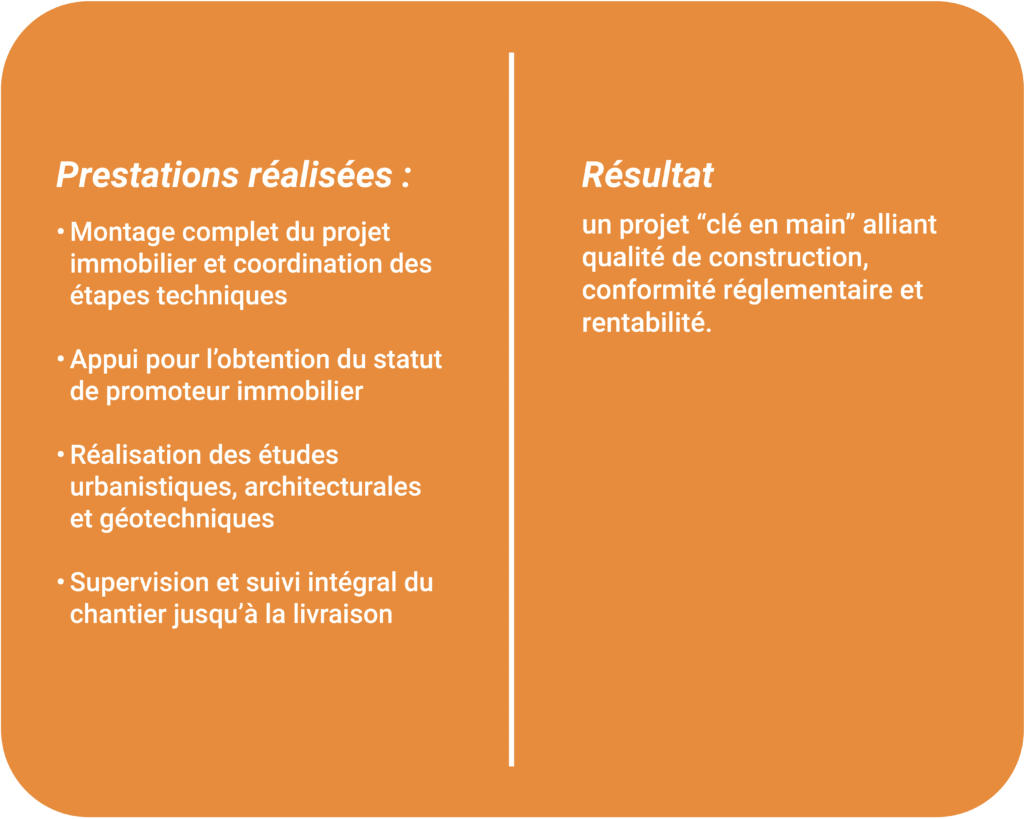 Société spécialisée dans le bâtiment, les travaux publics et le génie civil, nous concevons, réalisons et rénovons depuis 2015 des ouvrages de référence alliant qualité, innovation et durabilité. Nos ingénieurs, techniciens et chefs de projet interviennent sur des chantiers résidentiels, industriels, institutionnels et commerciaux, en assurant un suivi rigoureux à chaque étape : études techniques, conception architecturale, exécution et contrôle qualité. Grâce à un savoir-faire reconnu et à une maîtrise complète du cycle de construction, nous accompagnons les promoteurs immobiliers, investisseurs et particuliers dans la réalisation d’ouvrages solides, conformes aux normes et adaptés aux exigences du marché. La fiabilité au service de vos projets.